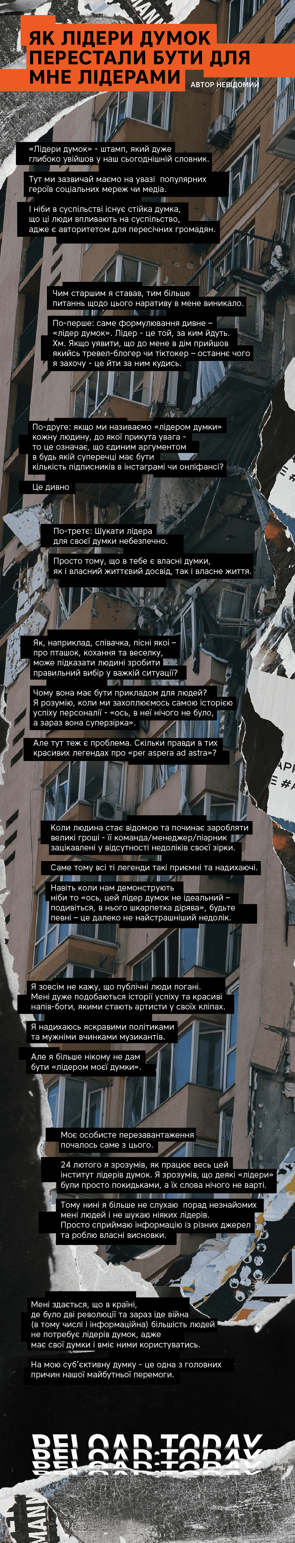 В рамках проєкту Reload.today ми продовжуємо серію постів-рефлексій про сьогоднішню та майбутню Україну. Ось сьомий.